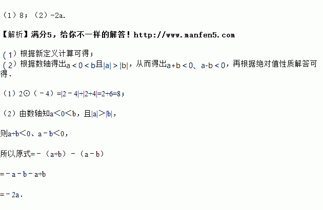 (2)若a,b在数轴上的位置如图所示,化简a⊙b.