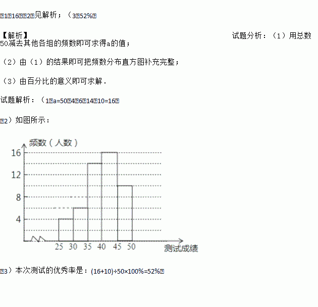 (3)若测试成绩不低于40分为优秀,则本次测试的优秀率是多少?