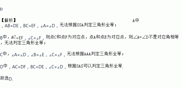 下列四组条件中,能够判定和全等的是( ).