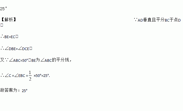 如图, 垂直平分线段于点的平分线BE交AD于点,连结,则∠C=________