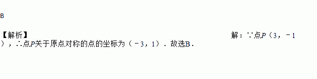 点P(3,﹣1)关于坐标原点对称点为( )
