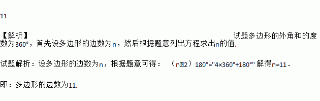 一个多边形内角和的度数比外角和的度数的4倍多180度,求多边形的边数。