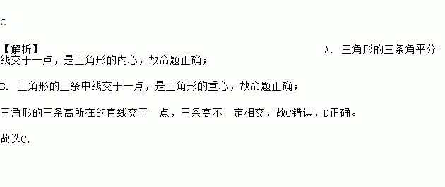 C. 三角形的三条高交于一点 D. 三角形的三条高所在的直线交于一点