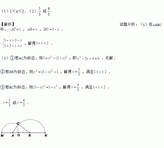 如图,已知A、B是线段MN上的两点,MN=4,MA=1,MB>1.以A为中心顺时针旋转点M,以B为中心逆时针旋转点N,使M、N两点重合成一点C,构成△ABC,设AB=x.