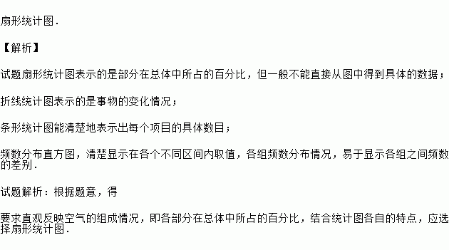空气是由多种气体混合而成的,为了简明扼要的介绍空气的组成情况,较好的描述数据,最适合使用的统计图是 .