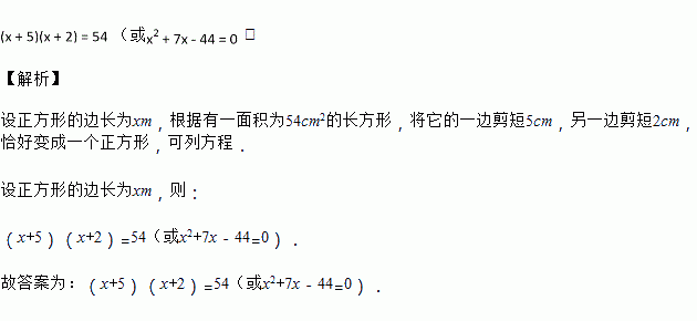 有一个面积为的长方形,将它的一边剪短,另一边剪短,得到一个正方形.若设这个正方形的边长为 ,则根据题意可得方程_________.