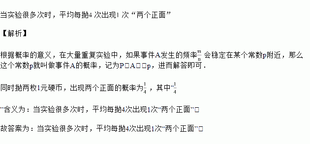 同时抛两枚元硬币,出现两个正面的概率为,其中“”含义为___.