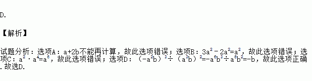 D.(﹣a2b)3÷(a3b)2=﹣b