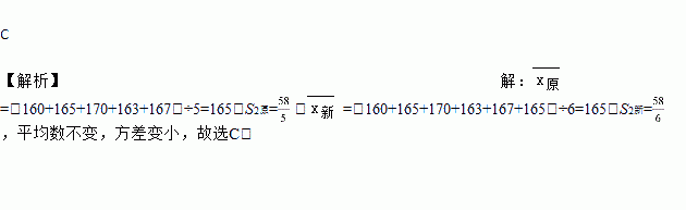 某科普小组有5名成员,身高分别为(单位:cm):160,165,170,163,167.增加1名身高为165cm的成员后,现科普小组成员的身高与原来相比,下列说法正确的是( )