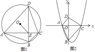(2)如图1,A,B,C,D是半径为1的⊙O上按逆时针方向排列的四个动点,AC与BD交于点E,∠ADB﹣∠CDB=∠ABD﹣∠CBD,当6≤AC2+BD2≤7时,求OE的取值范围;