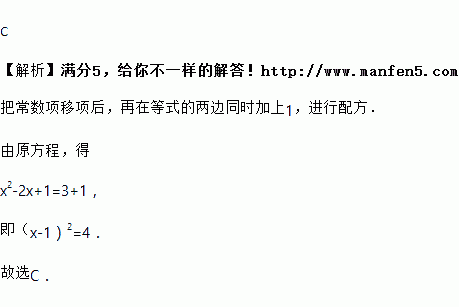 A. (x-2) 2=4 B. (x-1) 2=3 C. (x-1) 2=4 D. (x+1) 2=4