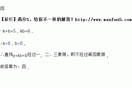 已知直线y=kx+b,若k+b=5,kb=6,那么该直线不经过第__象限.