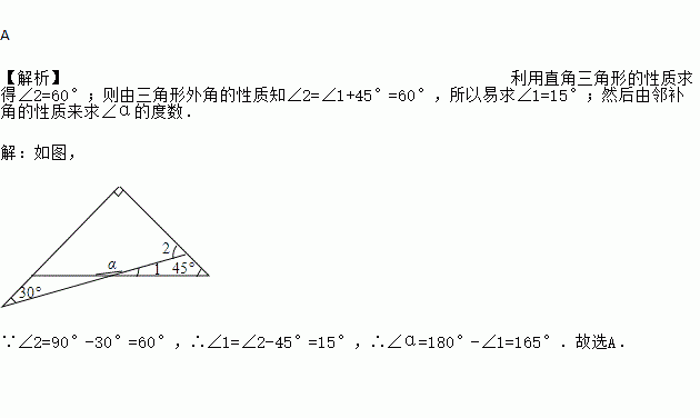 一副三角板有两个直角三角形,如图叠放在一起,则∠α的度数是( )