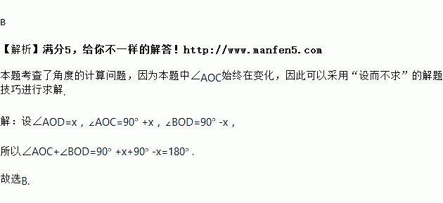 如图,将一副三角板叠放在一起,使直角的顶点重合于O,则∠AOC+∠DOB=( )