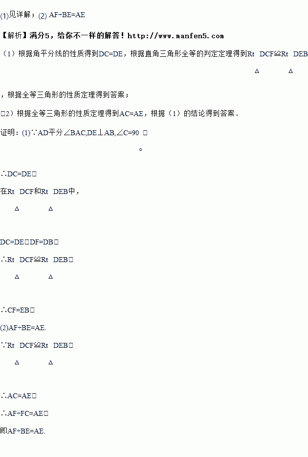 如图,在△ABC中,∠C=90°,AD平分∠BAC,DE⊥AB于点E,点F在AC上,且BD=DF.