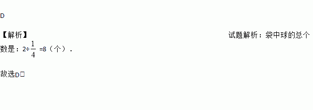 已知袋中有若干个球,其中只有2个红球,它们除颜色外其它都相同.若随机从中摸出一个,摸到红球的概率是,则袋中球的总个数是( )