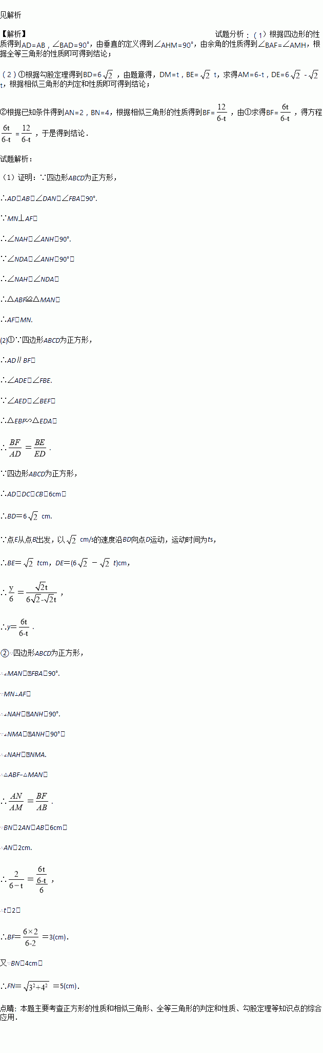 Õý·½ÐÎABCDµÄ±ß³¤Îª6cm£¬µãE£¬M·Ö±ðÊÇÏß¶ÎBD£¬ADÉϵ͝µã£¬Á¬½ÓAE²¢ÑÓ³¤£¬½»±ßBCÓÚF£¬¹ýM×÷MN¡ÍAF£¬´¹×ãΪH£¬½»±ßABÓÚµãN.