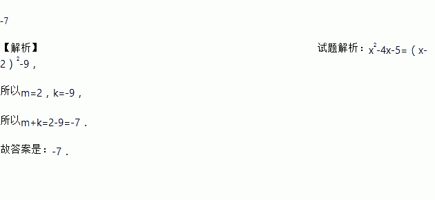 若把代数式x2-4x-5化成(x-m)2+k的形式,其中m,k为常数,则m+k=______.