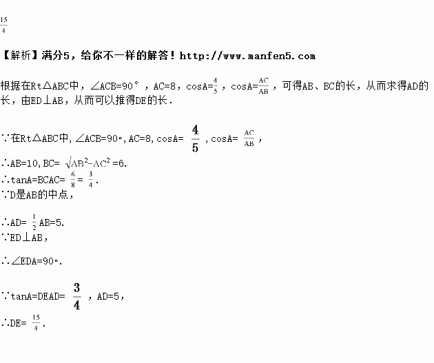 如图,在中,,是的中点,边点作的垂线交于点,,,则____.