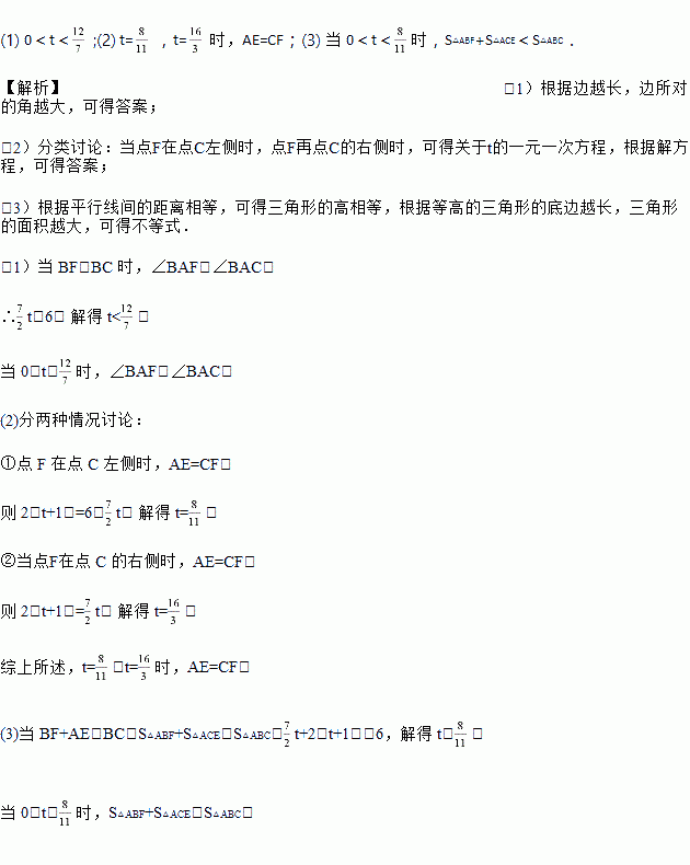 (3)当 t 为何值时,S△ABF+S△ACE<S△ABC.