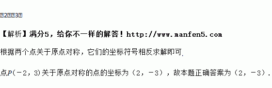 点A(﹣2,3)关于原点对称的点的坐标是_____.