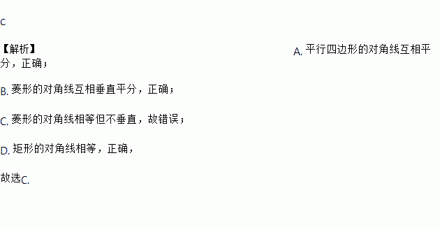 C. 菱形的对角线相等; D. 矩形的对角线相等.