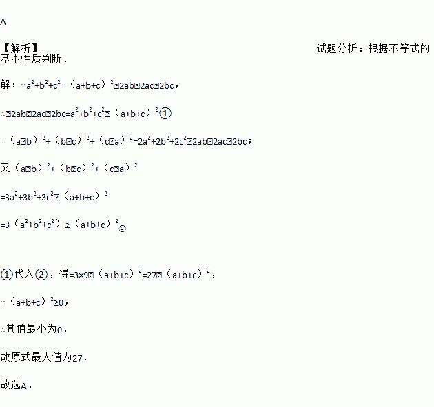 若实数abc满足a2+b2+c2=9,代数式(a﹣b)2+(b﹣c)2+(c﹣a)2的最大值是( )