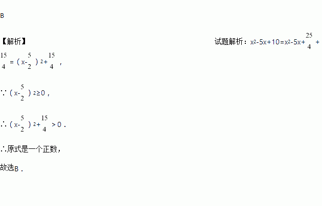 对于任意的实数x,代数式x2-5x+10的值是一个( )