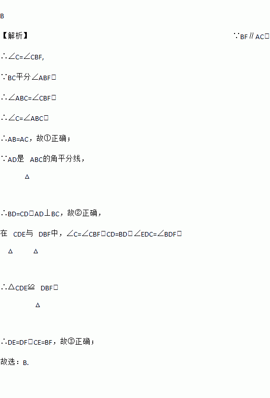 如图,AD平分,BD平分, 于E, 交ED的延长线于点F.给出以下三个结论:①;②;③,其中正确的结论共有( )