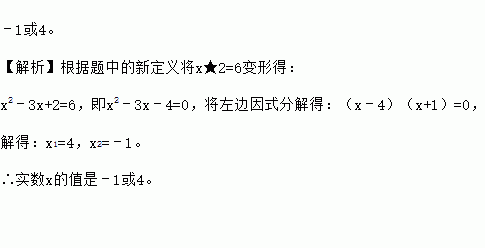 现定义运算“★”,对于任意实数a、b,都有a★b=a2﹣3a+b,如:3★5=32﹣3×3+5,若x★2=6,则实数x的值是 .