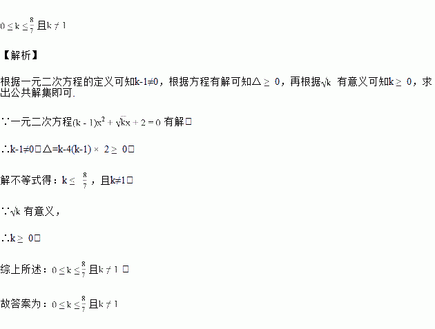 已知关于的一元二次方程有解,求的取值范围________.