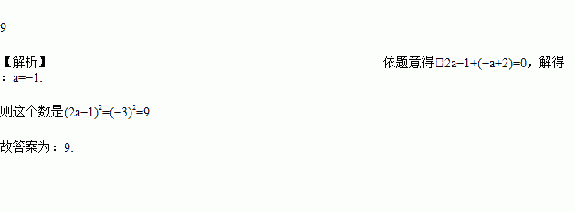 若一正数的两个平方根分别是2a-1与-a+2,则这个正数等于________.