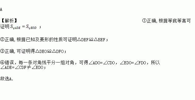 如图,O是菱形ABCD的对角线AC,BD的交点,E,F分别是OA,OC的中点.下列结论:①S△ADE=S△EOD;②四边形BFDE是中心对称图形;③△DEF是轴对称图形;④∠ADE=∠EDO.其中错误的结论有 .