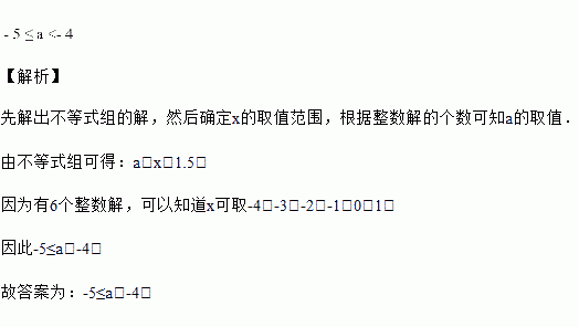 已知关于x的不等式组的整数解共有6个,则a的取值范围是______.