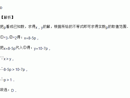 已知x,y同时满足以下三个条件:①3x-2y=4-p;②4x-3y=2+p;③x>y 那么P的取值范围是( )