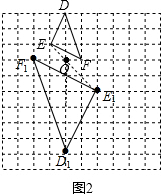 (2)以图2中的点O为位似中心,在网格内画出△D1E1F1,使它与△DEF位似,且相似比为2.