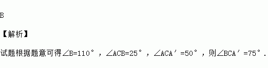 如图,将△ABC绕着点C顺时针旋转50°后得到△A′B′C′.若∠A=45°.∠B′=110°,则∠BCA′的度数是( )