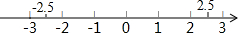 解:如图所示:分属于原点两侧且与原点的距离相等的两点间的距离为5,那么这两个点表示的数为±2.5.