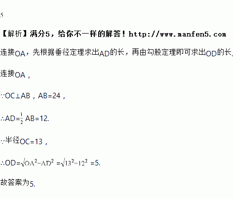 如图,在中,垂直弦于点,交于点,若,半径,则的长是________.
