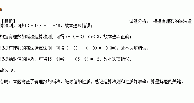 A. (﹣14)﹣5=﹣9 B. 0﹣(﹣3)=3