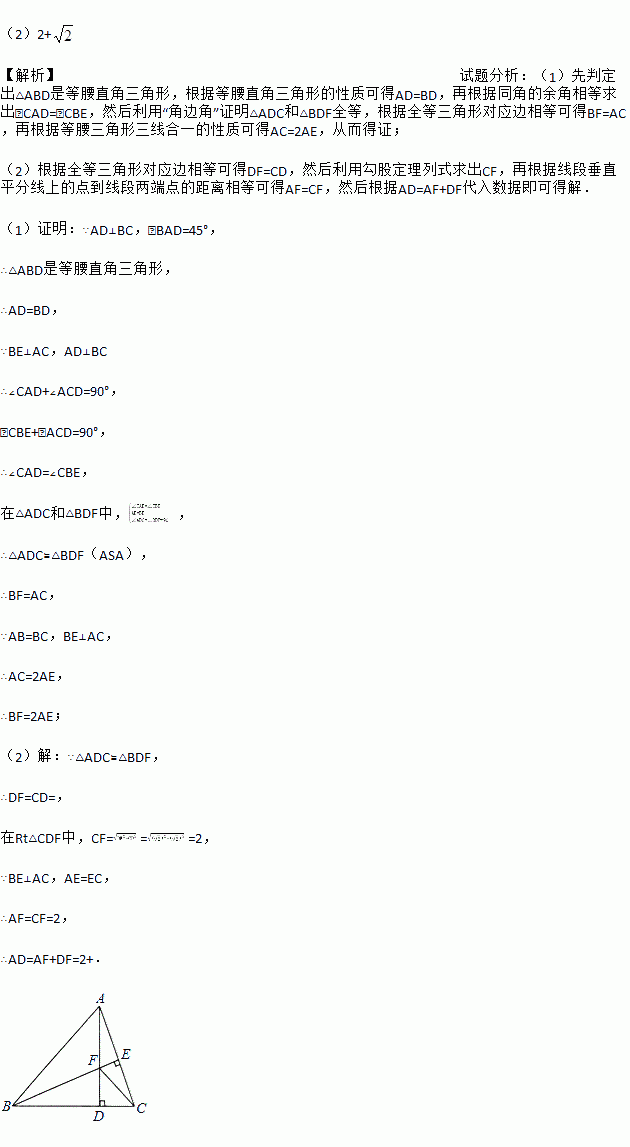 ∠BAD=45°,AD与BE交于点F,连接CF.