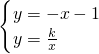 已知一次函数y=-x-1与反比例函数