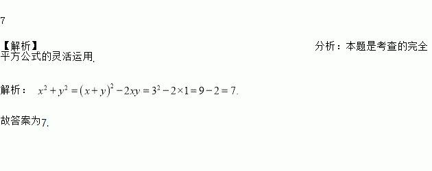 已知x+y=3,xy=1,则 x2+y2的值是__________.