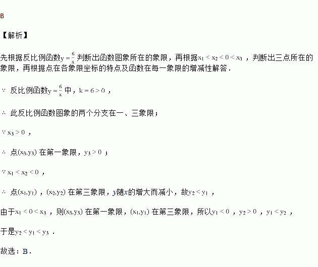 反比例函数图象上有三个点,,,其中,则,,的大小关系是
