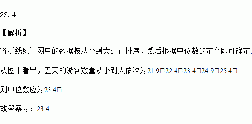 春节期间,重庆某著名旅游景点成为热门景点,大量游客慕名前往,市旅游局统计了春节期间5天的游客数量,绘制了如图所示的折线统计图,则这五天游客数量的中位数为__.