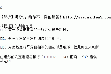 一组对边平行,另一组对边相等并且有一个角为直角的四边形是矩形.![]()