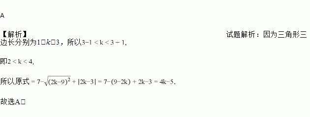 如果一个三角形的三边长分别为1、k、3,化简结果是( )