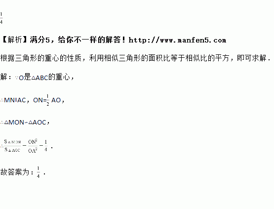 如图,O是△ABC的边AB、AC上中线的交点, AN、CM相交于点O,那么△MON与△AOC面积的比是____________.