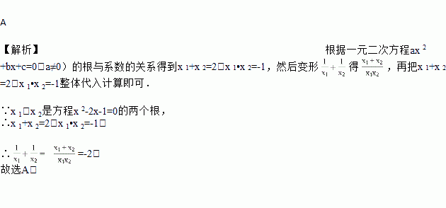 已知是方程x2—2x—1=0的两个根,则的值为( )