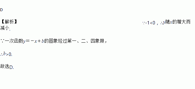 已知一次函数y=﹣x+b的图象经过第一、二、四象限,则b的值可以是( )
